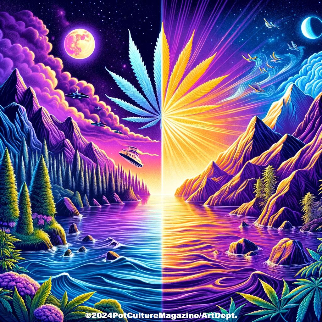 As the mist cleared, Dr. Green found herself at the base of a vast mountain, its peaks piercing the sky. The air buzzed with energy, a stark contrast to the calm she had left behind. This was the Sativa Summit, a land of boundless energy and creativity, where the Daywalkers thrived.