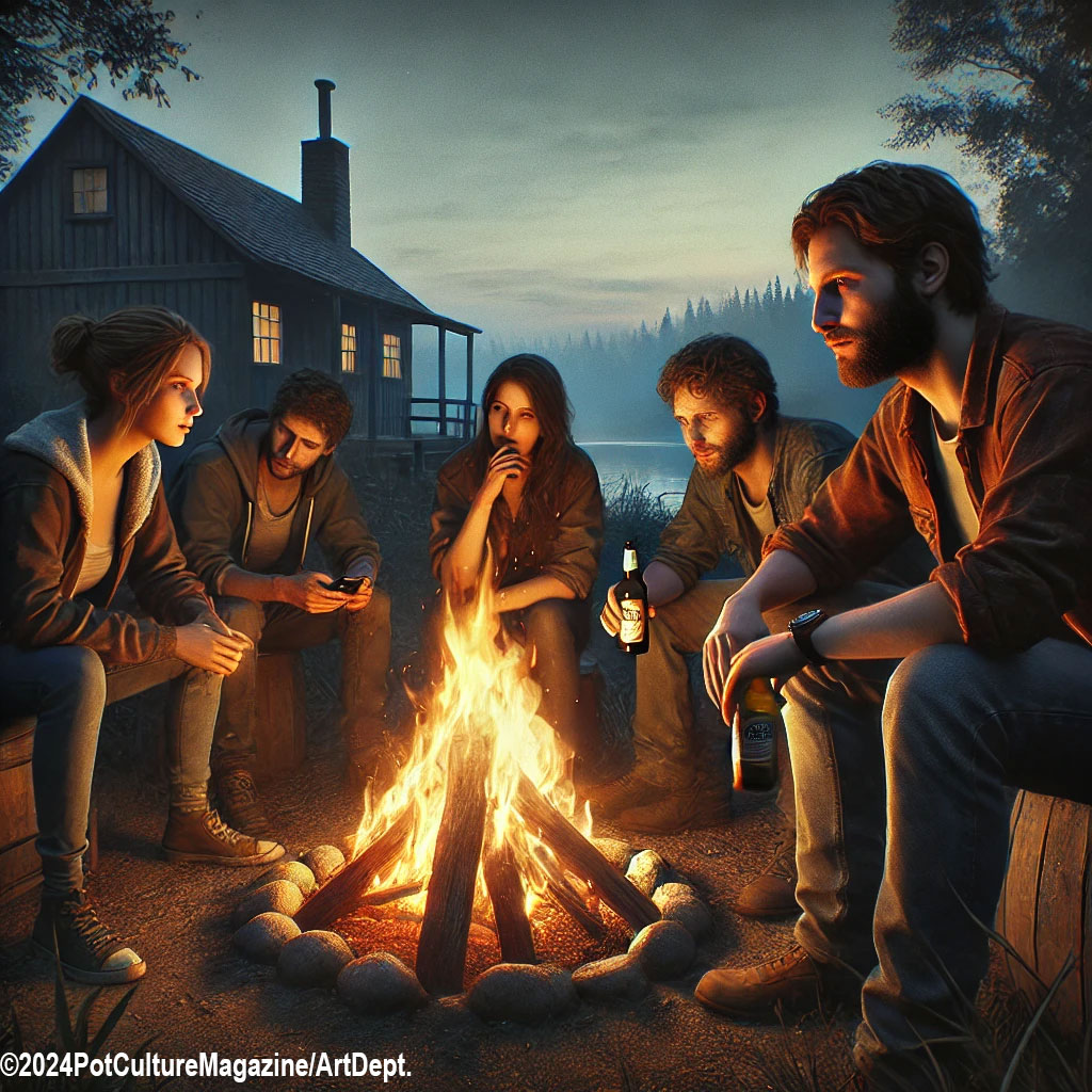 That evening, they gathered around the campfire, the dark lake stretching out before them, its surface reflecting the last light of the day. It felt familiar, but something was off—like the easy rhythm they once had was just out of reach.