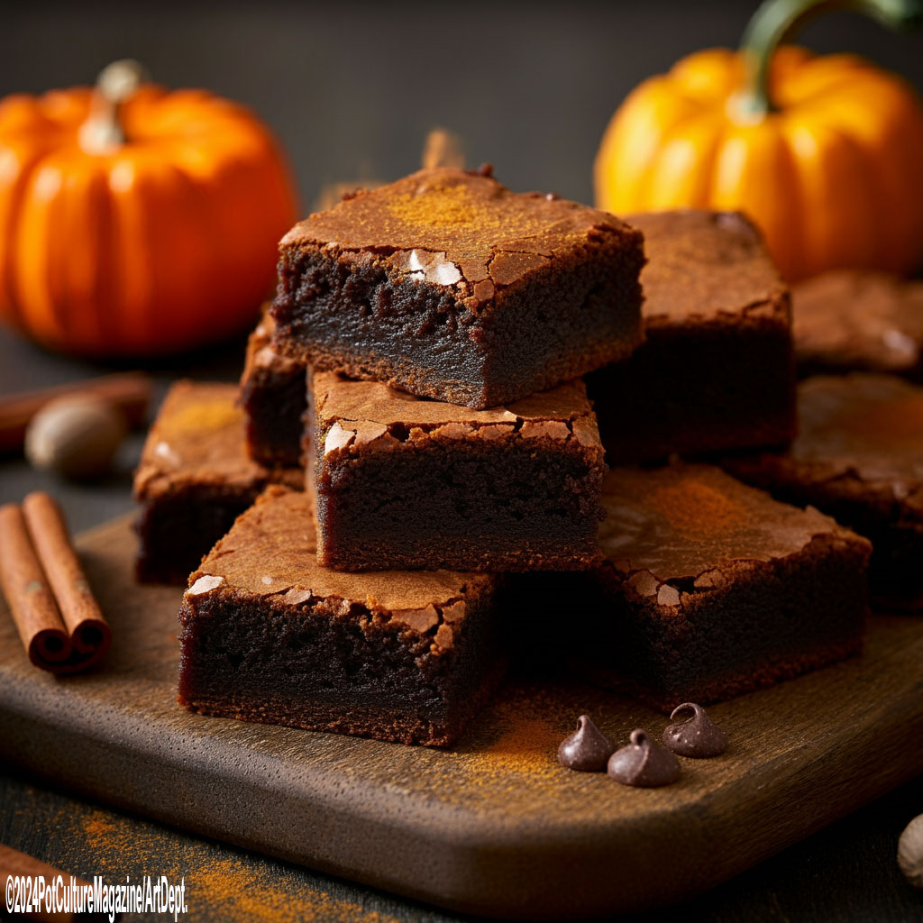 - Ingredients: Basic brownie mix, ½ cup pumpkin purée, 1 tsp cinnamon, ½ tsp nutmeg, ½ cup cannabutter (see PCM’s base recipe)