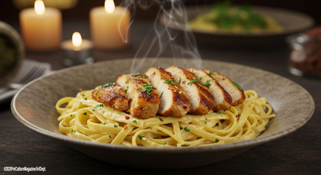 A rich, comforting pasta dish with tender garlic butter chicken, parmesan, and a creamy infused sauce.