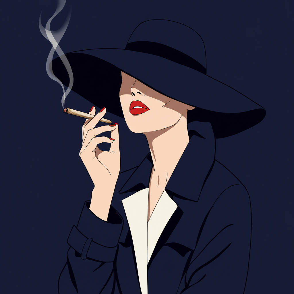 Our cover image exudes effortless confidence—a woman draped in midnight blue, her hat casting a mysterious shadow, lips painted a striking red, and a perfectly rolled joint in hand. She is power. She is poise. She is the embodiment of “high society”—on her terms.