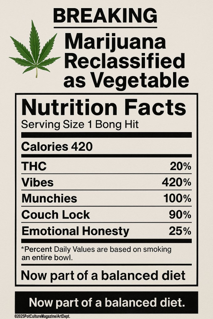 “This story is part of Pot Culture Magazine’s April 1st satire series. No vegetables or bureaucrats were harmed in the making of this article.”