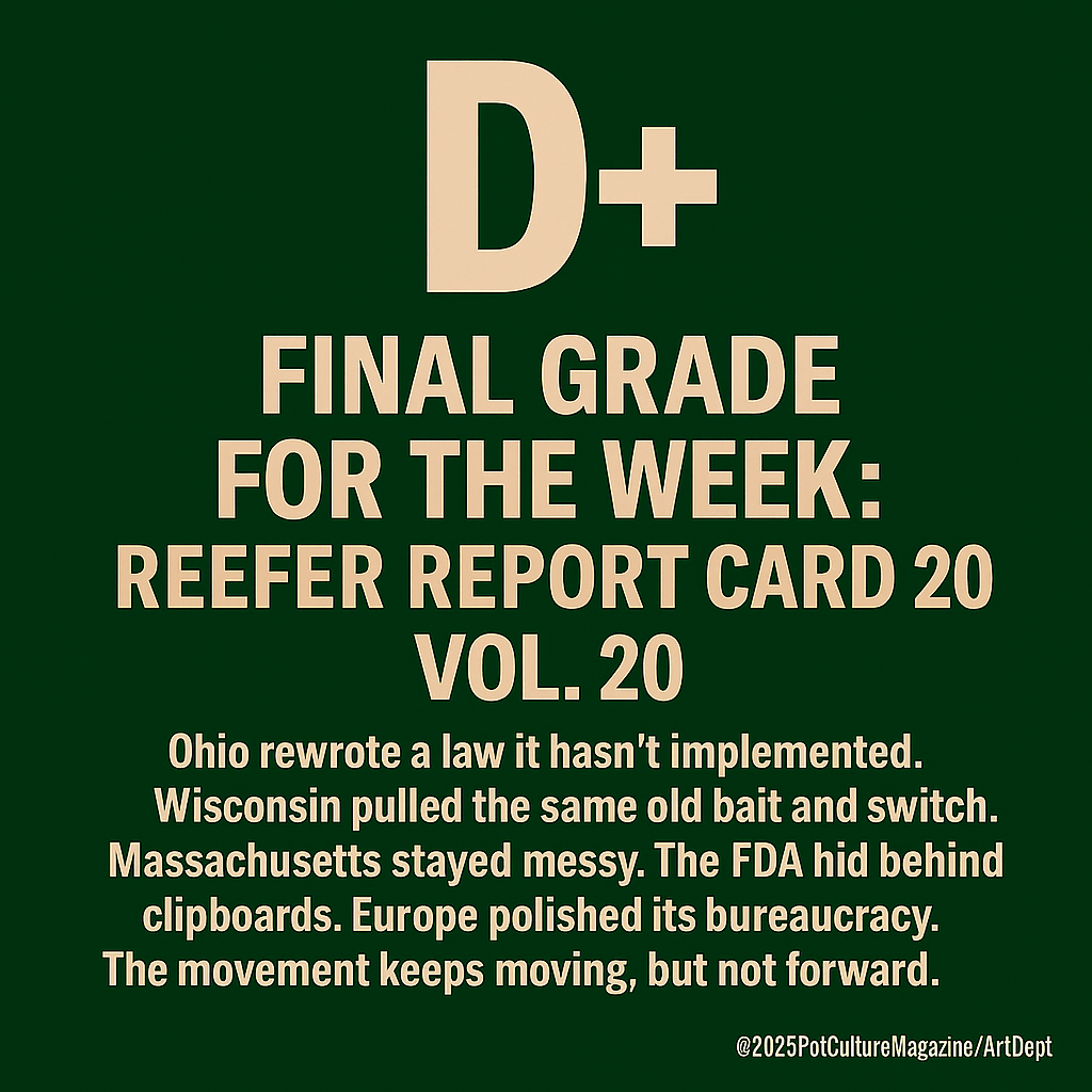 The week rolled out confusion wrapped in reform. Ohio rewrote its own legalization law before it took effect. Wisconsin pretended that prohibition was compassion. Massachusetts still can’t regulate itself. The feds teased clarity on CBD while Europe doubled down on fear. Let’s grade the wreckage.