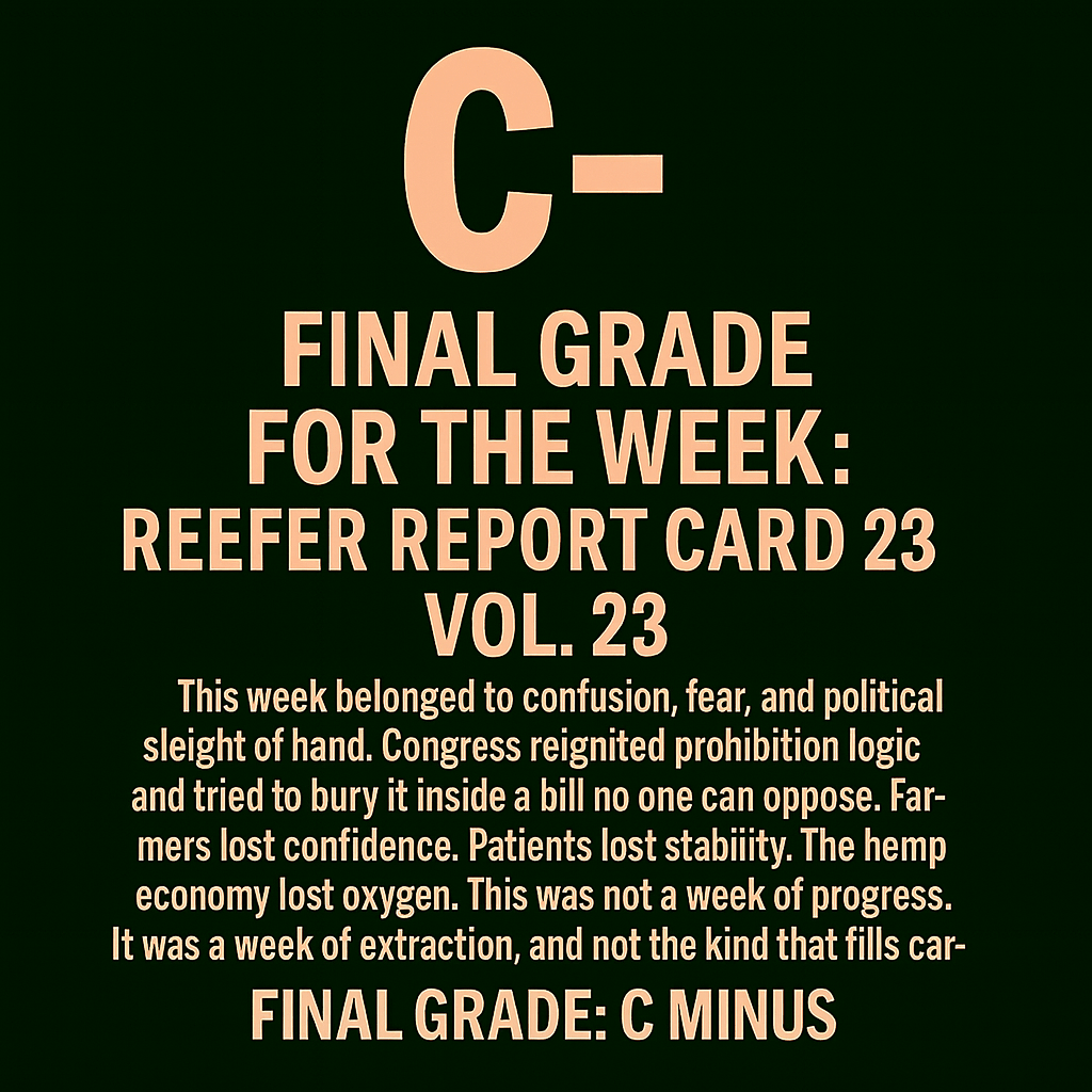 This week belonged to confusion, fear, and political sleight of hand. Congress reignited prohibition logic and tried to bury it inside a bill no one can oppose. Farmers lost confidence. Patients lost stability. The hemp economy lost oxygen. This was not a week of progress. It was a week of extraction, and not the kind that fills cartridges.