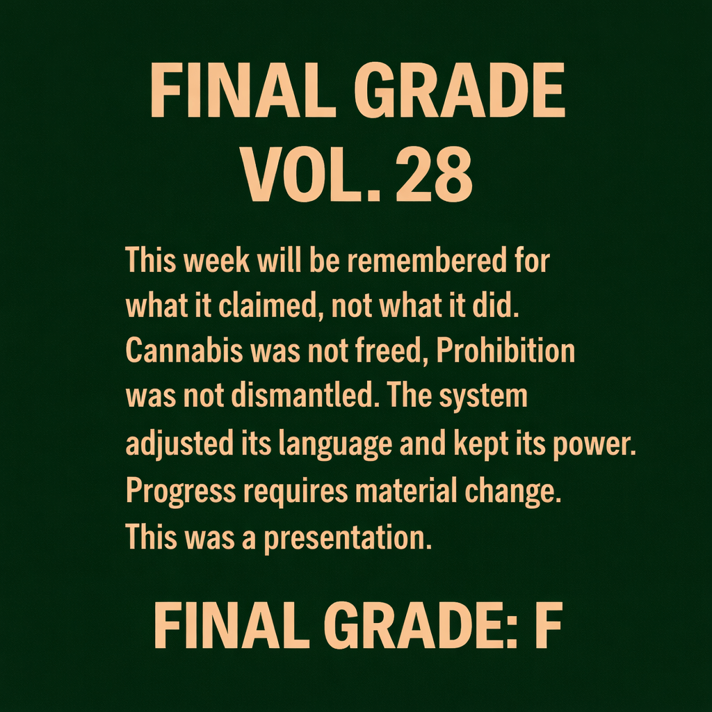 This week will be remembered for what it claimed, not what it did. Cannabis was not freed. Prohibition was not dismantled. The system adjusted its language and kept its power.